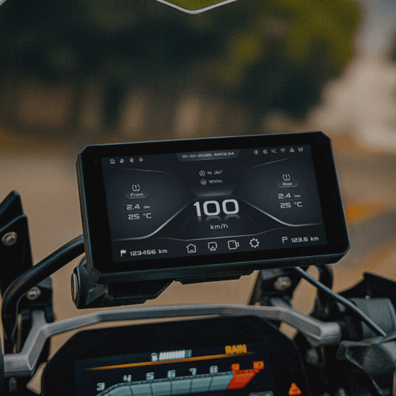 Descubre la colección JADO para motos: pantalla inteligente JADO S6 con CarPlay y Android Auto, pantalla de 6" resistente al agua IP69K, sensores TPMS Bluetooth, mando a distancia para manillar y cámara Sony de 2 MP. Accesorios electrónicos premium para motos de turismo y aventura con envío rápido desde Endurrad.