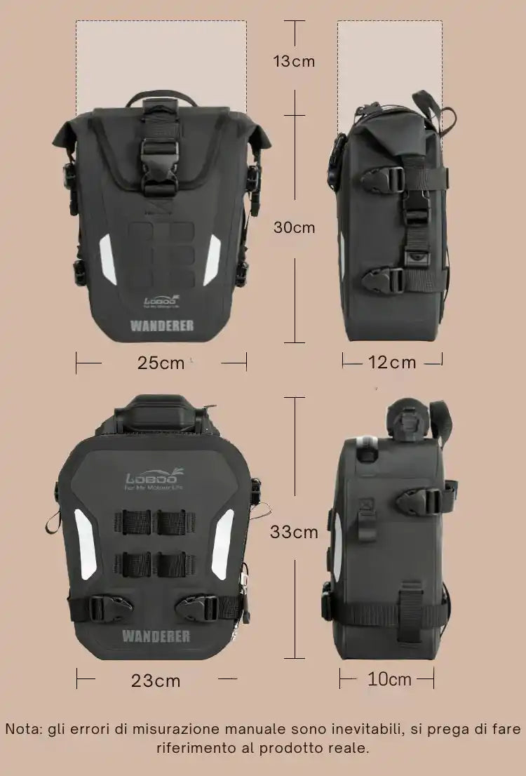IPX7, 6 l por lado, antirrobo y materiales técnicos: todo en dos bolsas compactas y listas para usar. -